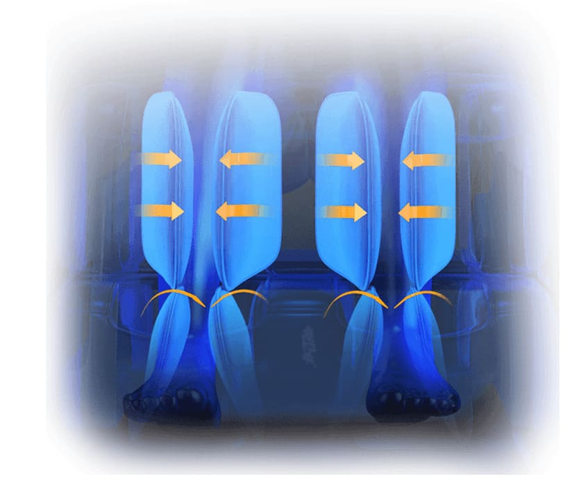 Массажные ролики и компрессионные подушки тщательно прорабатывают всю стопу — от пятки до кончиков пальцев, стимулируя рефлекторные зоны, связанные с работой внутренних органов.