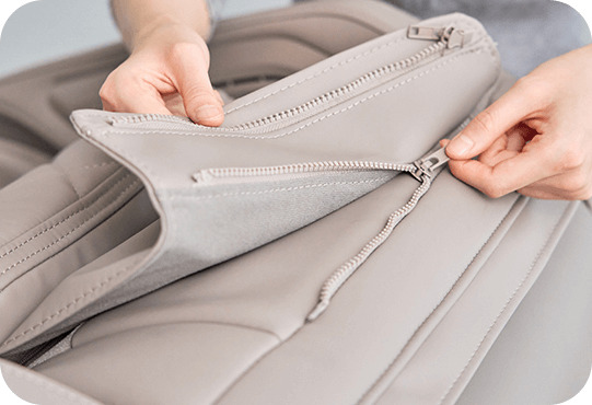 В кресле FLEXOR вы можете легко регулировать интенсивность массажа - просто снимите или верните обратно съемную накидку, чтобы усилить или смягчить воздействие роликов.