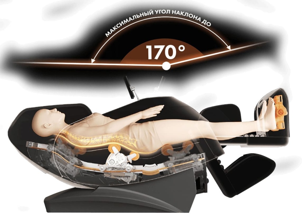 Гибкий SL-трек с регулируемым наклоном до 170° для полного охвата спины и шеи. Голосовое управление (15 команд на русском) для удобного выбора режимов.